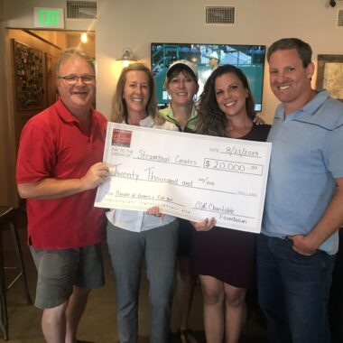 Featured in the photo left to right: Kathy and Scott Schroeder (homeowners), Olivia Kimmeth (Olivia’s Home Furnishings), Robin Campbell (Interior Designer) and Marc Fraioli (Affordable Home and Lawncare).