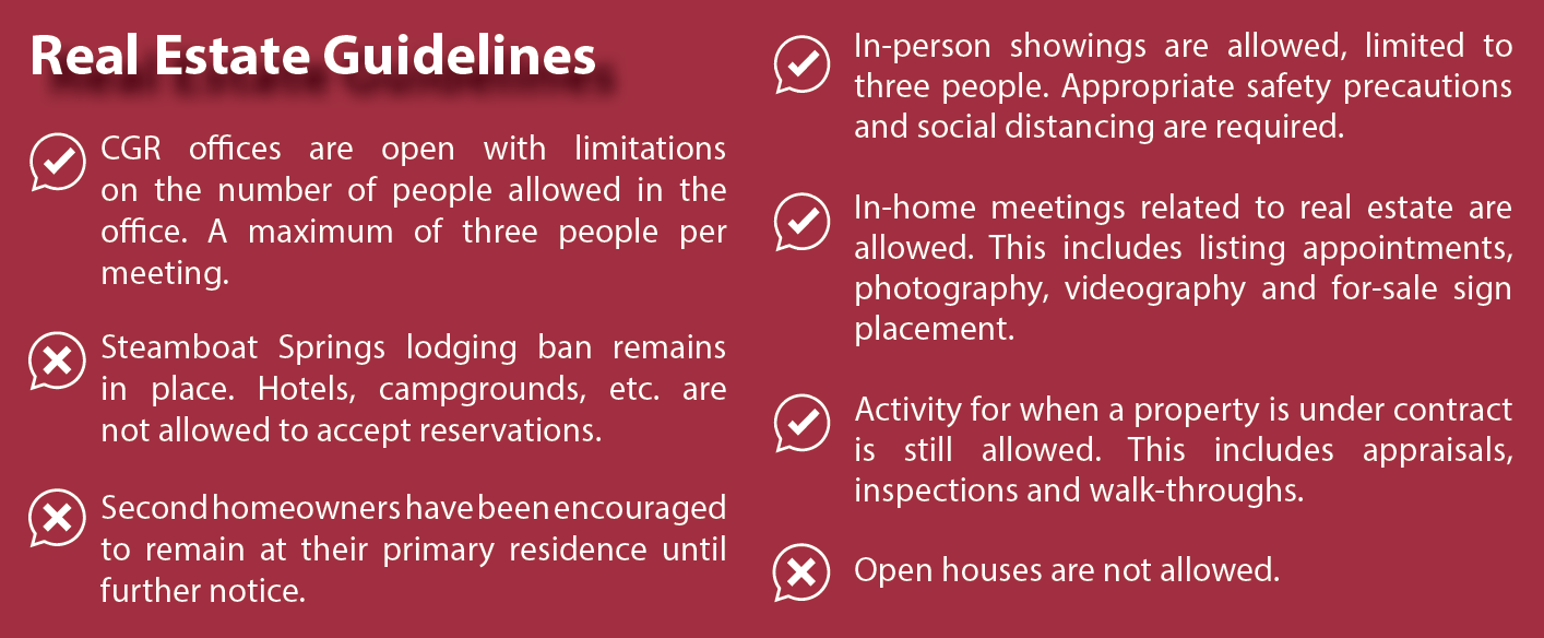 We’ve outlined some real estate guidelines that will navigate you through the most recent changes. Whether you are buying, selling or just browsing, here is some information to keep you in the loop. Please let us know if you have any questions and remember that your safety is our main priority during this time!