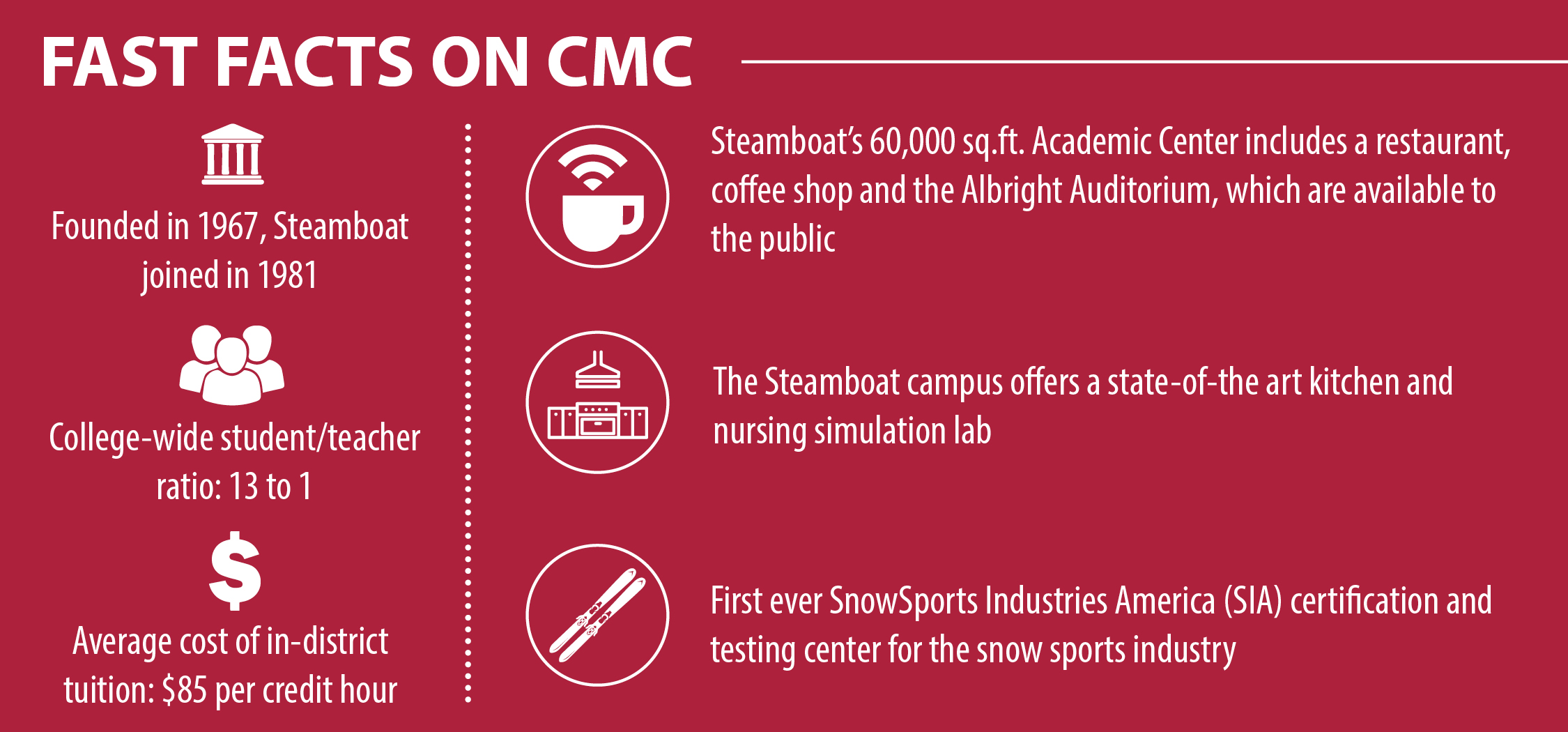 Despite the current pandemic, the college has been able to adapt through online programming and small class sizes. Public access to facilities and community classes were stopped helping the campus avoid a COVID-19 outbreak. Around 100 students are currently living in the dorms at the Steamboat campus. Investment in technology accelerated in 2020. Classroom systems allow delivery from any classroom across the college system, enabling instruction from faculty at other campuses. “Students will always want in-person education, smaller classes, connection with other students and faculty, that is the hallmark of the CMC experience,” said JC Norling, Interim Campus VP/ Dean of the Steamboat campus.Hands-on learning, internships and life skills bring theory to life at CMC. Classrooms are not just rooms in buildings, but the magnificent public lands that surround each campus. “The college will always remain rooted to the community.” Norling said.