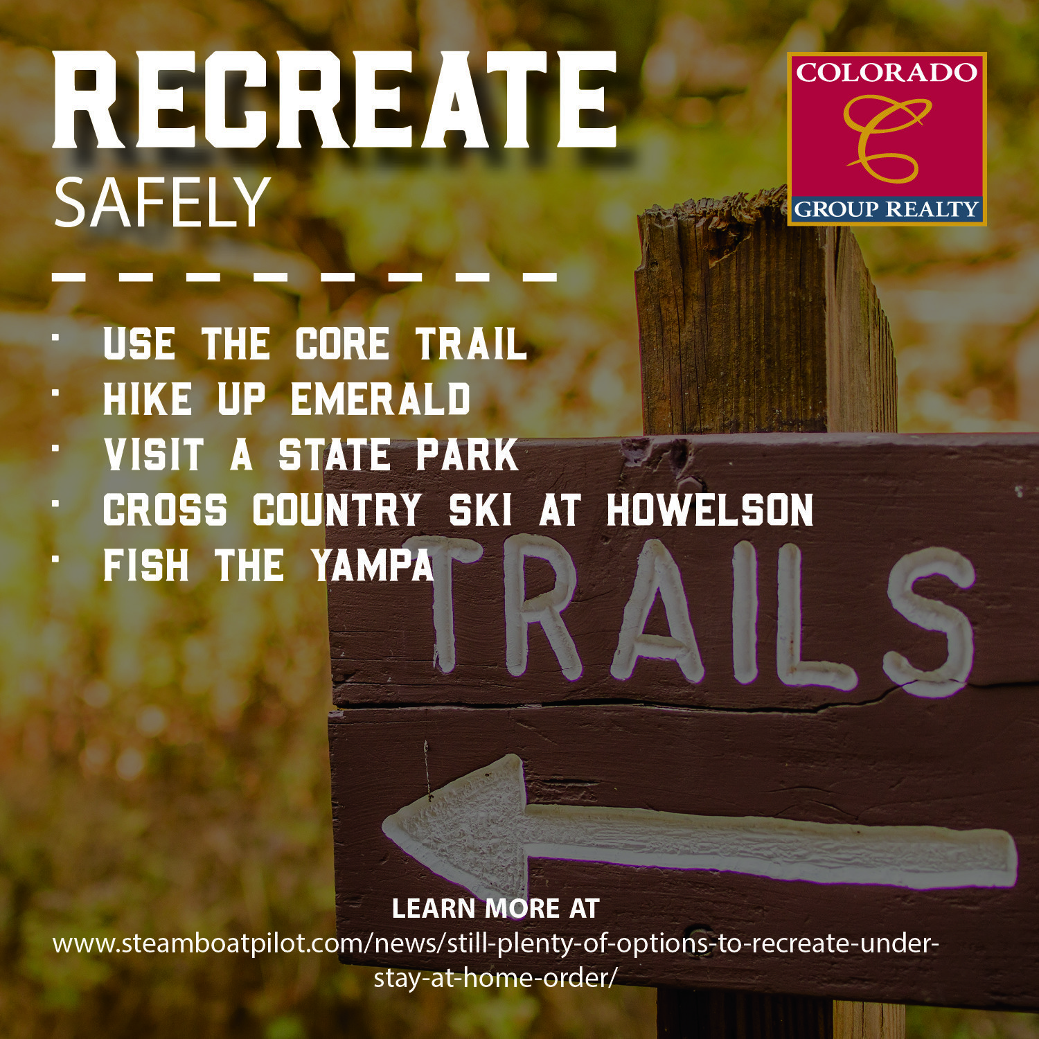 - For more ideas visit: https://www.steamboatpilot.com/news/still-plenty-of-options-to-recreate-under-stay-at-home-order/