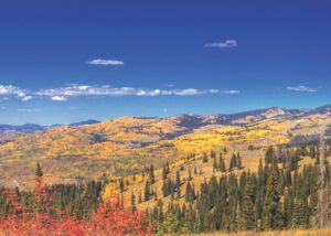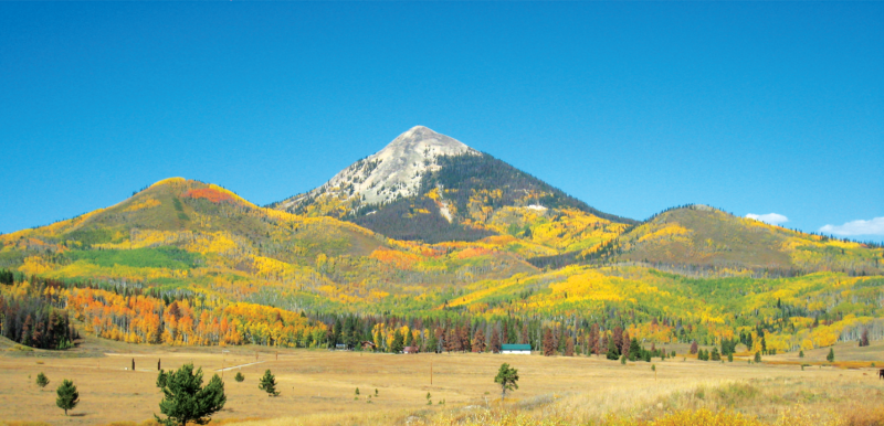 covers of publications from Powder to Ski Magazine. He counts The Flat Tops Wilderness Area Scenic Byway from Yampa over Dunkley Pass to the top of Ripple Creek Pass as a favorite drive to capture the colors.