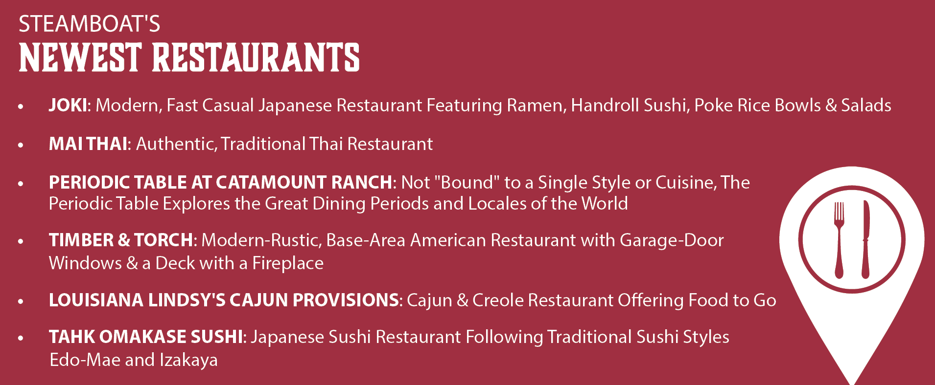 The only thing left to find is something to wash down the food and that too can be as local as you like. Steamboat Winery boasts a River Angler Cabernet and Slopeside White Chardonnay, among their offerings. Not to mention the Bunny Slope sparkling grape juice for a non-alcoholic option. Steamboat Whiskey packs a punch for hard liquor and craft beer lovers have an ever-growing choice of brews coming out of Steamboat’s eclectic mix of brewers. Cheers to another great day in the ‘Boat!