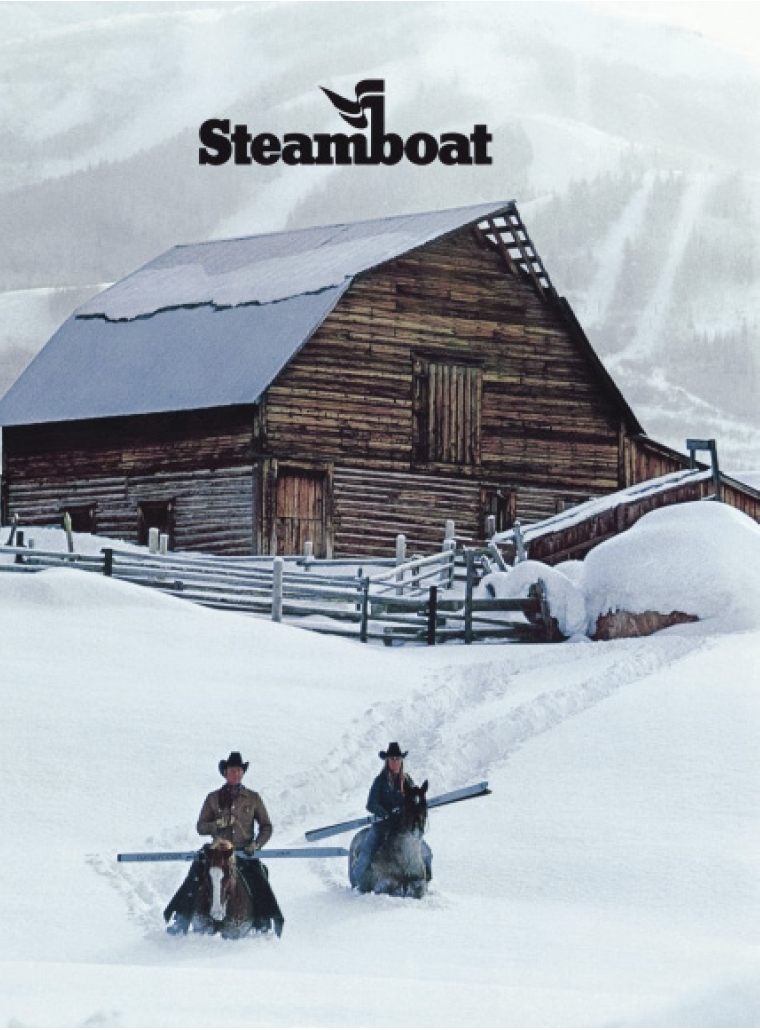 With the sale of the last of the original 62 residential building lots in Steamboat Barn Village, many wondered what made the iconic More Barn so famous: a 1972 poster marketing the new Steamboat Ski Area. Two ski instructors rode horseback— carrying their skis—through 18 inches of fresh powder. The image simultaneously captured the essence of our western lifestyle and exposed the quality of Ski Town, USA.