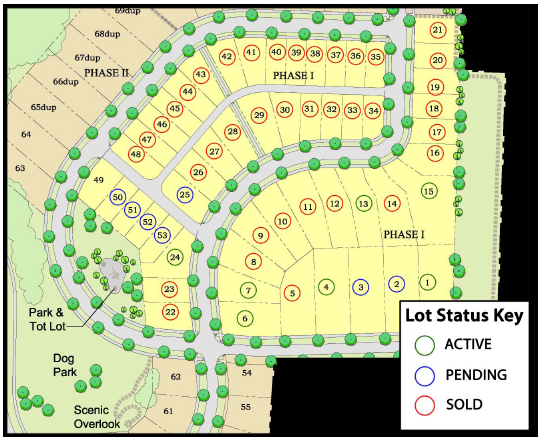Sunlight neighborhood released 48 lots for sale this past summer and only seven remain unsold. 24 lots were purchased by a developer that plans to build eight single-family homes thi