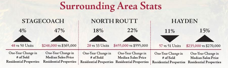 Speaking of increasing sales prices, the median sales price for single family homes in Routt County has crested $600K, up from $540K at the same time last year. Routt County condos and townhomes are also at their highest level in years, at a median price of $400K, up significantly from just two years ago when the median condo and townhome was selling for exactly $300K.