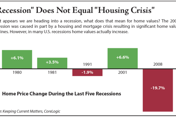 As it appears we are heading into a recession, what does that mean for home values? The 2008 recession was caused in part by a housing and mortgage crisis resulting in significant home value declines. However, in many U.S. recessions home values actually